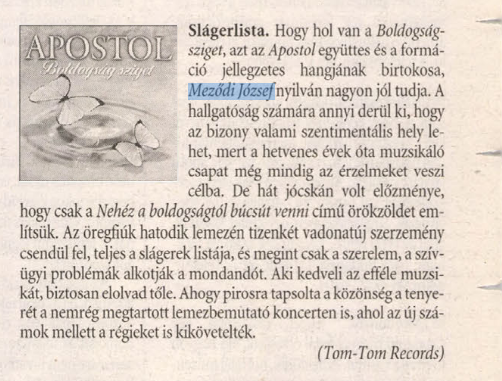 A Szabadföld 2004-12-03-án megjelent 49. száma az Apostol együttes kiadványát ajánlotta.