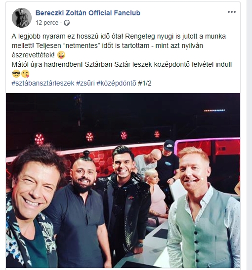 Mától újra hadrendben! Sztárban Sztár leszek középdöntő felvétel indul! „ – közöltw szinész-énekes a hivatalos oldalán.