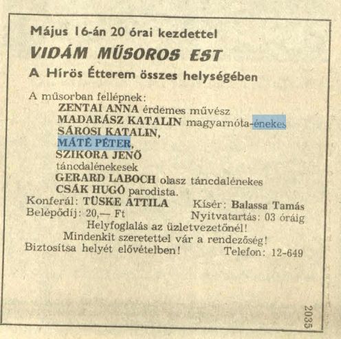 Az esten Máté Péter többedmagával lépett fel.