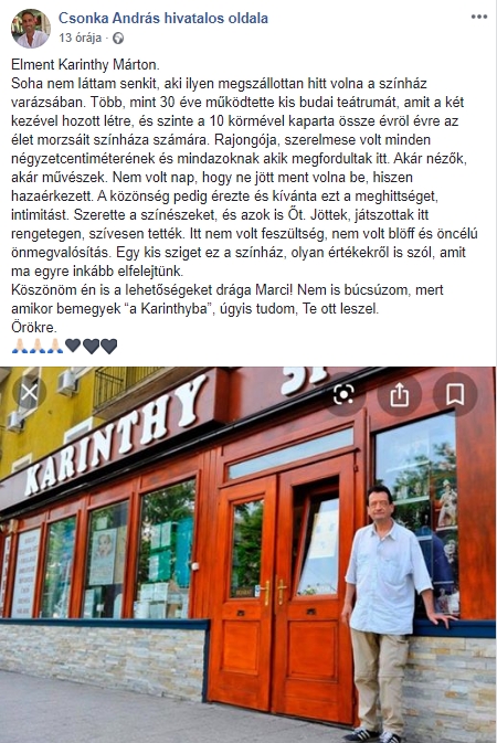 Köszönöm én is a lehetőségeket drága Marci! Nem is búcsúzom, mert amikor bemegyek “a Karinthyba”, úgyis tudom, Te ott leszel.
